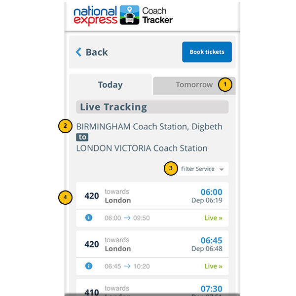 3. You can filter your coach journey by service number