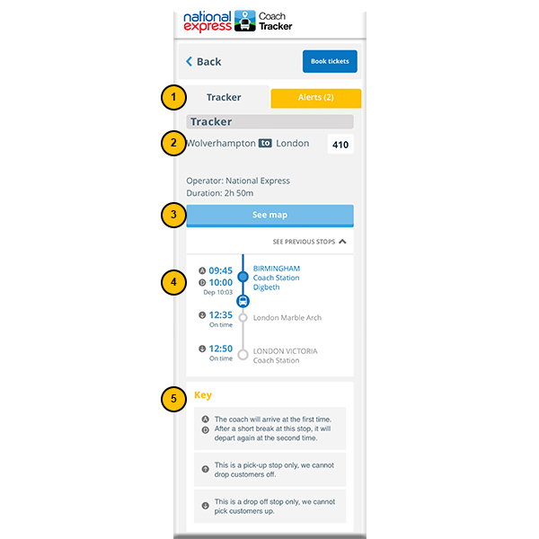 - View your coach on a map so you're kept fully up-to-date with your journey's progress.